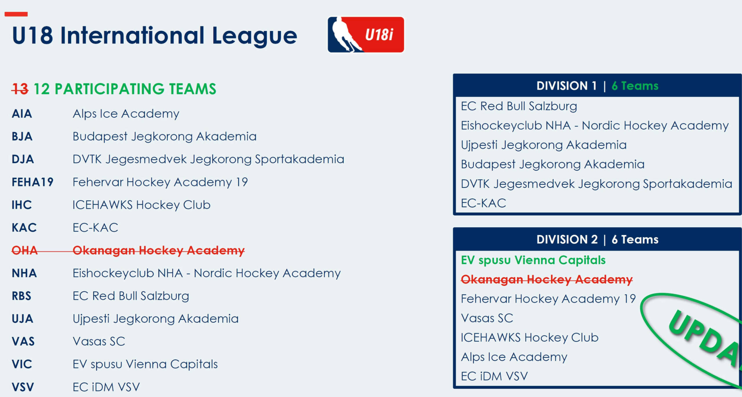 Tra i partecipanti figurano alcune delle accademie più prestigiose d’Europa, come Red Bull Salzburg, EC Klagenfurt, VSV Villach, Vienna Capitals, nonché le accademie ungheresi di hockey su ghiaccio: Budapest Jegkorong Akadémia, Újpest e Fehérvár AV19.